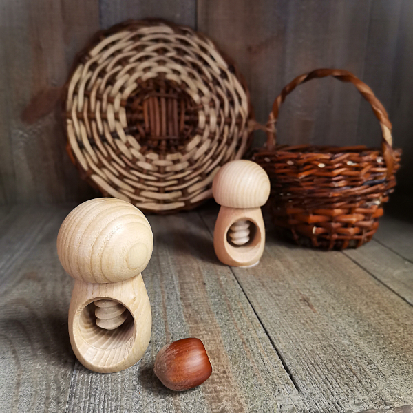 Le modèle ci dessous est fabriqué en Hêtre avec la partie de la tête du champignon teintée. Ce système à vis simple et efficace casse la coquille en douceur sans écraser la noix. Idéal pour avoir du beaux cerneaux.